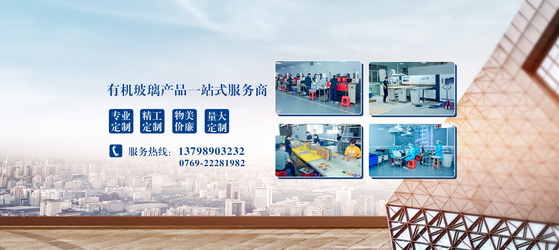 <p> 我公司坐落在全球最大的制造业基地之一的东莞。她东起扬州五十公里，南距金陵古都九十公里，西有二零五国道和沪宁、宁连、宁徐、宁洛、京沪等高速贯穿相连，物流条件十分优越，交通较为便利。我们本着“诚实做人，诚信做事”的经营理念，并将以优质的有机玻璃制品、专业的服务奉献给新老朋友，为了美好明天，期待着与各界同仁携手共进！</p>